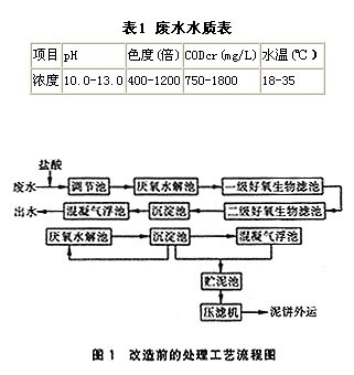 某紡織廠是一家香港獨資的大型企業(yè),1991年從香港遷移過來,總投資2億港幣,集 紡紗、染色、織布一條龍,產(chǎn)品為牛仔布。廢水主要來自染廠,其主要成分是靛藍粉(含石 灰、染料、木薯粉),另外還有NaOH、低硫酸鈉,廢水量在1000m3/d左右。正常情況下的廢水水質(zhì)如表1。