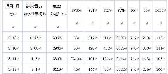 氧化溝內(nèi)泡沫消除之后,逐步加大進(jìn)水量,第一天進(jìn)水不宜超過(guò)100m3/h,以后逐步增加,觀察氧化溝內(nèi)是否再產(chǎn)生泡沫,如一次進(jìn)水量過(guò)大,超過(guò)500m3/h溝內(nèi)又將產(chǎn)生大量泡沫,前面的努力將付之東流,在投藥和進(jìn)水時(shí),均應(yīng)兩小時(shí)一次測(cè)PH值和鏡檢,觀察污泥的生物相、絲狀菌是否減少(絲狀菌至減少到C級(jí))、污泥結(jié)構(gòu)是否松散等。