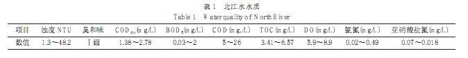 原水取自北江水,原水水質(zhì)如表1所示。由表1可知,本次實(shí)驗(yàn)所取的水源水質(zhì)較好,接近于地表水環(huán)境質(zhì)量標(biāo)準(zhǔn)Ⅱ類。但在2004年3月和4月,該水源出現(xiàn)了氨氮濃度突升的情況,分別達(dá)到了0.94mg/L 和 1.32mg/L, 導(dǎo)致水廠出水氨氮分別為0.6mg/L和0.98mg/L,超出了飲用水標(biāo)準(zhǔn)。因此采取有效措施應(yīng)對(duì)水中氨氮濃度突升是非常必要的。