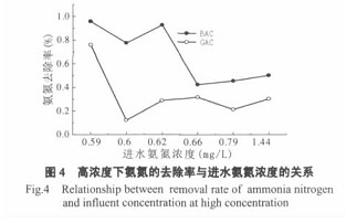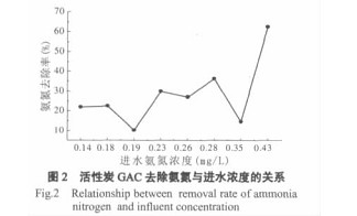 圖 2 活性炭 GAC 去除氨氮與進(jìn)水濃度的關(guān)系