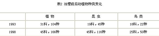 人工濕地的平面布置見圖2。在蓄水池出水口建高3.5m、寬40m的充氣式橡膠壩,用以控制出水口。水流經(jīng)引水渠到達(dá)設(shè)于地下的泵站。其所以設(shè)于地下,是為滿足景觀的要求。泵站安裝單機(jī)流量為1.25m3/s的兩臺(tái)水泵,水體加壓后流入箱形涵洞,再流入蘆葦蕩。蘆葦蕩占地20hm2,最大凈化水體能力為2.5m3/s。蘆葦蕩分為3個(gè)間隔,水流通過33個(gè)擋水堰流入。水流在蘆葦蕩中蜿蜒流動(dòng),以增加凈化效果,遂從33處出口匯入集水池,再由渡良瀨蓄水池的北閘門回到蓄水池,完成一次凈化循環(huán)。人工濕地內(nèi)主要種植蘆葦,高2-3m,可收獲用于編葦簾。此外,還種植同屬稻科的荻,高度為1.0-2.5m。自1993年開始建設(shè)人工濕地,不只水質(zhì)得到改善,動(dòng)植物的生態(tài)系統(tǒng)也得到極大改善。生物多樣性有所恢復(fù)(見表2)。