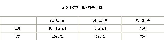韓國(guó)良才川水質(zhì)生物-生態(tài)修復(fù)設(shè)施建成至今已6年,治污效果顯著。表3為治理前后的對(duì)照,說(shuō)明對(duì)BOD和SS的處理率達(dá)70-75%。
