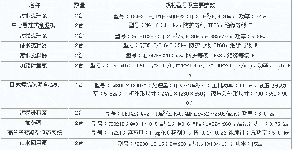 四、主要構(gòu)筑物及設(shè)備參數(shù)