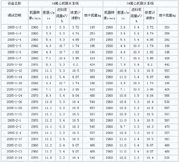 2、離心脫水機記錄數(shù)據(jù) 表3
