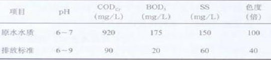 該公司生產(chǎn)廢水水量約為200m3/d,廢水處理系統(tǒng)設(shè)計運行時間為20h,設(shè)計處理水量為10m3/d。生產(chǎn)廢水的原水水質(zhì)和相關(guān)排放標(biāo)準(zhǔn)見表1。