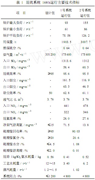 太倉(cāng)保利協(xié)鑫熱電公司 1號(hào)、 2號(hào)脫硫系統(tǒng) 168 h運(yùn)行的主要技術(shù)指標(biāo)詳見表 1。 1號(hào)脫硫系統(tǒng)在測(cè)試期間負(fù)荷波動(dòng)大 ,工況不穩(wěn)定 ,造成其凈煙氣中游離氨超過設(shè)計(jì)值。但從 2 號(hào)脫硫系統(tǒng)數(shù)據(jù)可見 ,在鍋爐工況穩(wěn)定的情況下 ,該指標(biāo)完全可以達(dá)到設(shè)計(jì)值要求。