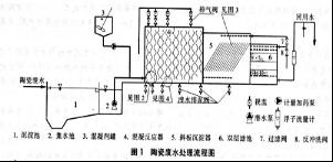 本系統(tǒng)從試運(yùn)行至今,已歷時(shí)3年多時(shí)間泥水分離狀況水分離狀況良好,污泥層界面非常清晰,出水清澈,瓶裝條件下與市售純凈水比較竟難于區(qū)分。整個(gè)系統(tǒng)運(yùn)行也一直穩(wěn)定,示未發(fā)生過故障。當(dāng)?shù)丨h(huán)保部門曾進(jìn)行了若干次測(cè)定,其結(jié)果如表1所示。