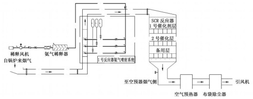 圖 1 高井熱電廠 SCR脫硝系統(tǒng)工藝流程 |