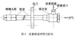 要求尿素與 NOx 必須在很短的時(shí)間內(nèi)完成反應(yīng) ,否則尿素就會(huì)流動(dòng)到較低的溫度區(qū)域 ,明顯降低尿素還原 NOx 的反應(yīng)程度。為了使尿素與NOx 的反應(yīng)在很短的時(shí)間內(nèi)完成 ,必須對(duì)尿素溶液進(jìn)行良好的霧化。對(duì)尿素溶液進(jìn)行良好的霧化 ,必須選擇噴嘴的結(jié)構(gòu)和噴嘴處的液體、氣體壓力和流量。