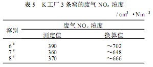 使 NOx 的排放有了一定幅度的降低。盡管如此 ,依然達(dá)不到日本國家標(biāo)準(zhǔn)的規(guī)定。所以 K工廠進(jìn)一步采取了添加尿素的二次措施。2003 年8月日本政府環(huán)境監(jiān)測部門對(duì) K工廠3條窯的廢氣NO濃度進(jìn)行了測量 ,結(jié)果見表5。