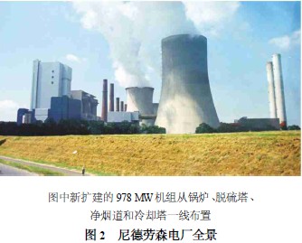 RWE 電力集團的尼德勞森電廠是一個具有幾十年歷史的老廠,位于德國科隆市西30 km。新擴建之前電廠已裝有2 ×150 MW,4 ×300 MW,2 ×600 MW等8 臺機組,共計2 700 MW。