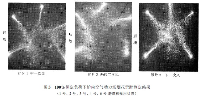 圖3中所示的是冷態(tài);囼(yàn)時爐內(nèi)流場煙花示蹤情況。