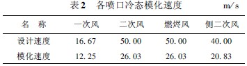表2中給出了根據(jù)相似;碚撍(jì)算的各噴口冷態(tài);俣。