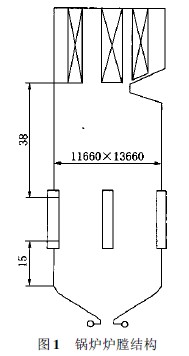 所改造鍋爐為六角墻式布置切圓燃燒,鍋爐爐膛結(jié)構(gòu)尺寸的高、寬、深分別為43.7m、13.66m、11.66m,如圖1 所示。根據(jù)其在運(yùn)行過程產(chǎn)生的問題,具體改造如下: