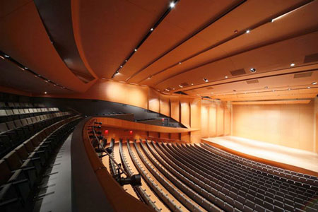 擁有1100個座位的愛麗絲·塔利音樂廳(Alice Tully Hall),是美國曼哈頓主要的綜合藝術(shù)表演基地,也是紐約市文化景觀的標(biāo)志性建筑。該建筑建成于1969年,其近期的改造是整個林肯中心園區(qū)(Lincoln Center campus)大規(guī)模重建計劃的一部分。項目的設(shè)計工作由迪勒·斯卡菲狄歐與倫弗洛建筑事務(wù)所(Diller Scofidio + Renfro)擔(dān)綱完成。改造后的慶典開放周從2009年2月22日開始,音樂界對其新的音響效果盛贊有加,JaffeHolden設(shè)計公司聲學(xué)家馬克· 霍頓(Mark Holden)的評價是:聲場效果就像是聲音從空中飄來一樣。事實上,正如《紐約時報》的文章標(biāo)題所示:“最終,在音樂廳聽到的是天籟之音。”