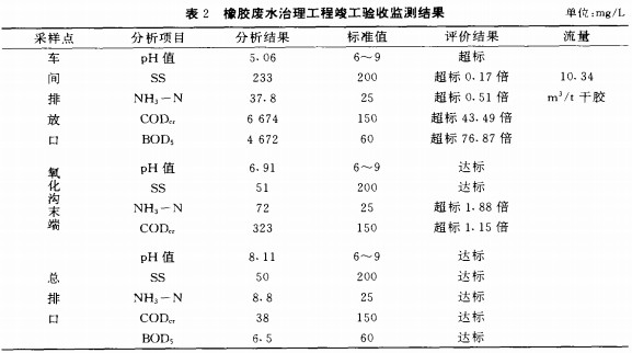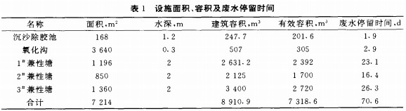 (1)設(shè)施面程、容積及廢水停留時間:經(jīng)實際測定,四膠廠目前日均廢水排放量為103.4m。,廢水在設(shè)施中停留時間為71d左右,平均流量為1O.34m。/t干膠。該設(shè)施的面積、容積及廢水停留時間見表1。