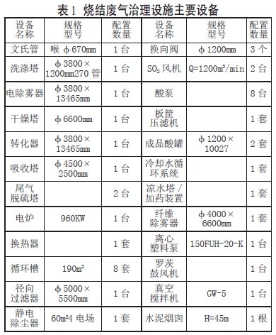 燒結(jié)機(jī)廢氣治理設(shè)施主要設(shè)備情況見表l。