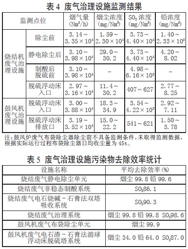 監(jiān)測結(jié)果表明,治理后燒結(jié)機(jī)、鼓風(fēng)爐廢氣中煙塵、二氧化硫和鉛的排放濃度均可滿足《工業(yè)爐窯大氣污染物排放標(biāo)準(zhǔn)》(GB9078-1996)二級標(biāo)準(zhǔn)的要求。