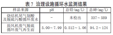 對治理設(shè)施循環(huán)水監(jiān)測結(jié)果見表7。