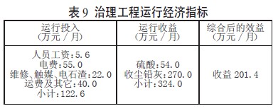 治理工程運(yùn)行經(jīng)濟(jì)指標(biāo)見表9。