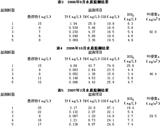 對上述5個水質(zhì)監(jiān)測斷面的取水樣進(jìn)行監(jiān)測分析,結(jié)果見表3、表4、表5。