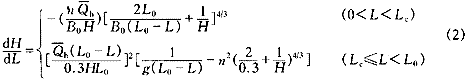 根據(jù)繪出的水面曲線圖,按水面曲線落差為1cm將其分為三段,確定各段的長(zhǎng)度Li和配水頭Zi,qi、Ci和mi的計(jì)算如下:qi=μA(2gZi)1/2,Ci=L0/(Qh/qi),mi=li/Ci,其中取流量系數(shù)μ=0.062。