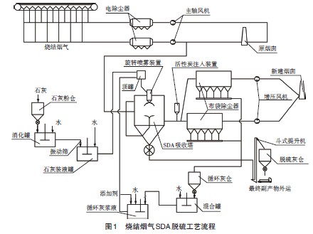 燒結(jié)煙氣SDA 脫硫工藝流程見圖1。