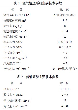 4. 2 輸送及噴射系統(tǒng)主要技術(shù)參數(shù)