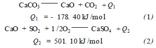 將各物熱容差值代入上式并積分,可求得石灰石分解和脫硫反應(yīng)熱效應(yīng)分別為: