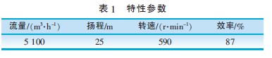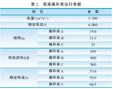 內(nèi)蒙古能源準(zhǔn)大發(fā)電廠2×300 MW 機(jī)組采用 石灰石—石膏濕法煙氣脫硫裝置, 脫硫系統(tǒng)主要包 括石灰石漿液制備系統(tǒng)、FGD 系統(tǒng)、石膏脫水系統(tǒng)。 吸收塔采用噴淋空塔型式, 每臺(tái)吸收塔布置3 臺(tái)漿 液循環(huán)泵。吸收塔漿液循環(huán)泵為L(zhǎng)C600/825 型單級(jí) 單吸式離心泵,軸向調(diào)節(jié)結(jié)構(gòu),能軸向調(diào)節(jié)葉輪,保 持葉輪與前蓋板和耐磨板的間隙, 從而保證泵的效 率。特性參數(shù)見(jiàn)表1。吸收塔漿液循環(huán)泵按單元制設(shè) 置,能夠把吸收塔漿池內(nèi)的漿液循環(huán)送至噴嘴,每臺(tái) 循環(huán)泵與各自的噴霧層連接。