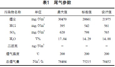 2 尾氣主要技術(shù)參數(shù)(見表1)