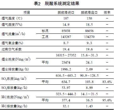 2002年底,棗莊資源電廠垃圾焚燒尾氣凈化系統(tǒng)投入運(yùn)行,并由業(yè)主及棗莊市環(huán)保局組織驗(yàn)收。表2為監(jiān)測結(jié)果。