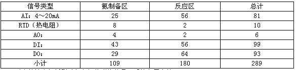 脫硝DCS系統(tǒng)采用與主機系統(tǒng)一樣的硬件(上海福克斯波羅公司)。脫硝系統(tǒng)相對主廠房或脫硫系統(tǒng)來說,其需控制設(shè)備的點數(shù)較少,下表為烏沙山電廠#4機組脫硝的DCS系統(tǒng)的信號表: