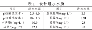 根據(jù)該廠各生產(chǎn)工序廢水水質(zhì)特征,將電鍍生產(chǎn)廢水分含鉻、含氰、綜合、含堿廢水,這些廢水來(lái)自不同的生產(chǎn)工序,組分復(fù)雜,廢水水量160m3/d,其中含鉻混合廢水40m3/d,含氰廢水40m3/d,綜合(酸堿)廢水80m3/d。考慮到該廠生產(chǎn)規(guī)模擴(kuò)大的可能,將該廠廢水處理站處理規(guī)模設(shè)計(jì)為200m3/d,出水水質(zhì)執(zhí)行《污水綜合排放標(biāo)準(zhǔn)》(GB8978—1996)一級(jí)標(biāo)準(zhǔn),設(shè)計(jì)進(jìn)水水質(zhì)見表1。