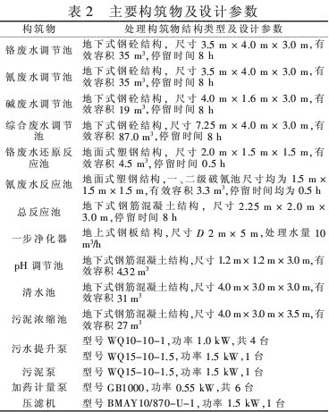 主要構(gòu)筑物、設(shè)備及設(shè)計(jì)參數(shù)見表2。