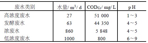 | 表1 車間廢水類別及其水量水質(zhì) |