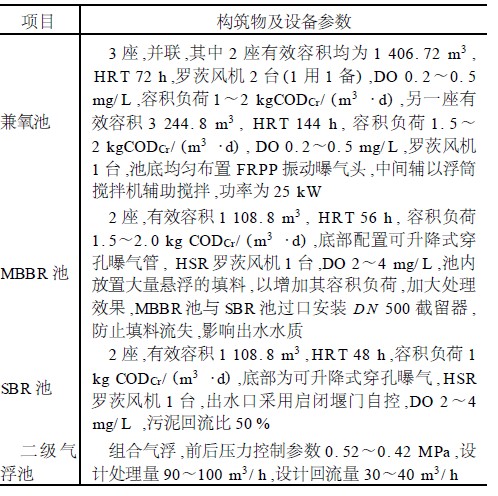 | 表2 主要構(gòu)筑物及設(shè)備參數(shù) |