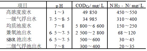 (2) 各股高濃度廢水收集后經(jīng)液堿調(diào)節(jié)至p H 7~8. 5 ,再入一級(jí)氣浮池,CODCr去除效果明顯。