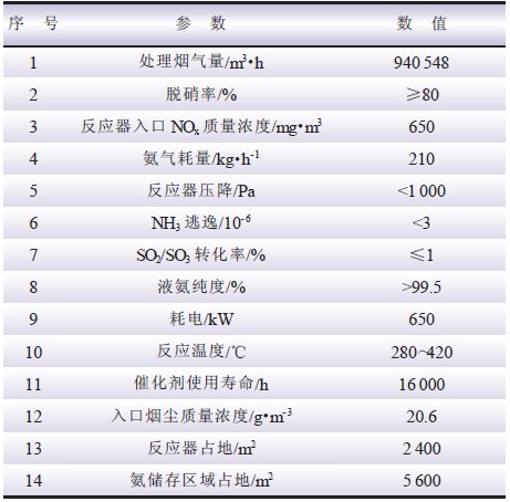 表1 煙氣脫硝系統(tǒng)設(shè)計參數(shù)