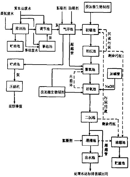 工程對污染物的去除率要求比較高。常規(guī)污水預處理+生化二級處理工藝不能保證本工程的污水達標排放,特別是COD和氨氮的穩(wěn)定達標。根據(jù)本項目的進出水水質特點,設計確定采用 HSBEMBM RM+A/O高效微生物生化處理為主、輔以混凝氣浮等物化處理的污水治理工藝。
