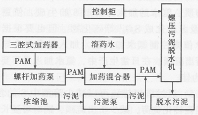 本鋼焦化廠的生物脫氮工藝選用了2臺(tái)污泥脫水機(jī),單臺(tái)能力5~10m3/h,并配套了污泥進(jìn)料泵、全自動(dòng)絮凝劑、加藥裝置、反沖洗水泵、電氣自動(dòng)控制柜等。