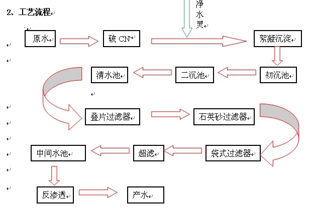 經(jīng)過破氰和沉淀的原水水質(zhì)為pH:5.95-6.81;濁度:10NTU;SS:40mg/l,該水質(zhì)超過超濾系統(tǒng)的進水水質(zhì)標準,必須經(jīng)過預(yù)處理,使SS值降至30mg/L以下的水平;另外,進水中會殘留有少量的膠體顆粒,這些膠體會對超濾膜和RO膜造成嚴重的堵塞,因此必須通過預(yù)處理將這些膠體去除;此外,由于廢水處理中加入了酸、堿、鹽等化學(xué)藥劑,因此,回用進水中所含的金屬離子較多,電導(dǎo)率也會較高,若所加的是石灰或鈣鹽,則回用處理過程中會產(chǎn)生嚴重的結(jié)垢現(xiàn)象。針對以上進水水質(zhì)的特點,超濾系統(tǒng)和反滲透系統(tǒng)必須采取有效的預(yù)處理措施,才能保證取得良好的處理效果,并能長期穩(wěn)定運行。