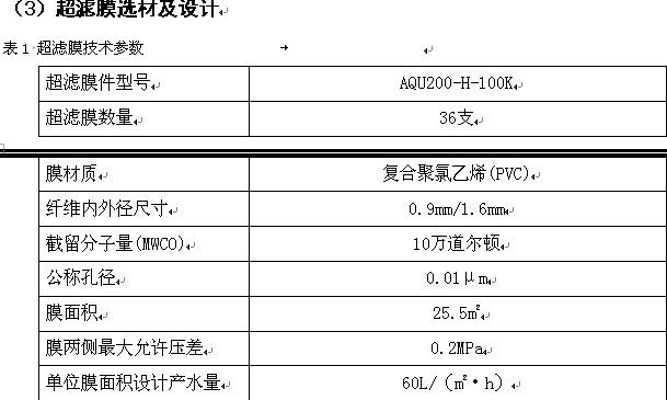 3、超濾系統(tǒng)設(shè)計參數(shù)