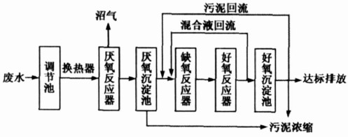 | 圖1 UASB(上流式厭氧污泥床)—A/O(缺氧/好氧) 工藝流程圖 |