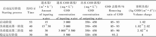 | 表2 UASB反應(yīng)器啟動(dòng)運(yùn)行情況 |