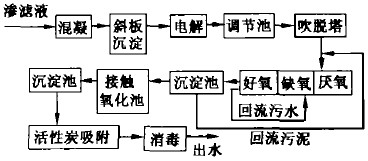 圖1吳江市垃圾衛(wèi)生填埋場滲濾液生物原處理裝置工藝流程