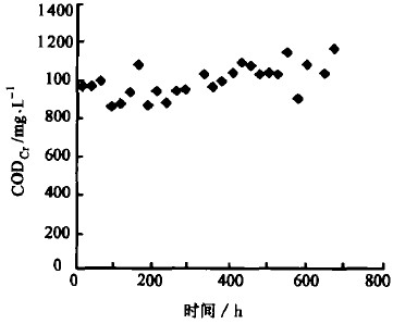 圖4流量為1.0m3/h時的CODcr去除情況