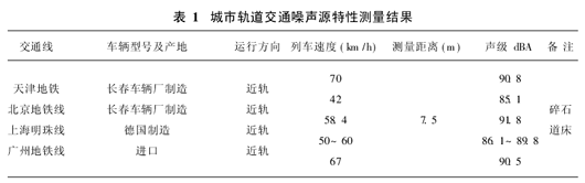 不同車輛在國內(nèi)既有軌道交通上運(yùn)行的噪聲源特性測量結(jié)果見表1。