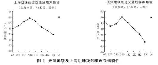 天津地鐵以及上海明珠線的噪聲頻譜特性見圖1。