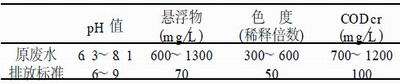 廣東東莞東江造紙廠是利用當?shù)貜U紙生產(chǎn)掛面 紙, 瓦楞原紙的企業(yè), 日產(chǎn)150t 成紙, 廢水排放量為 6000töd , 廢水水質(zhì)及排放標準見表1。